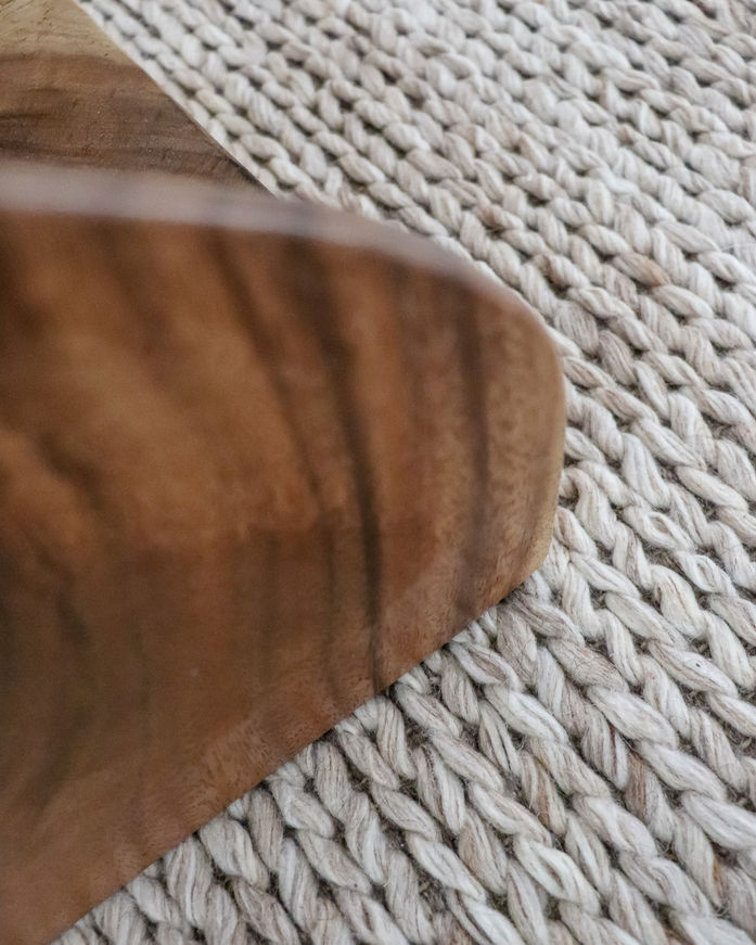 This decision transforms the room from a conventional sleeping area into a private sanctuary. A large natural-fibre rug anchors the layout, while elongated curtain hems and layered materials — linen, mohair, varied wood finishes and soft mineral tones — introduce depth without clutter. An evocative artwork adds a personal reference point, grounding the space in memory as well as comfort.